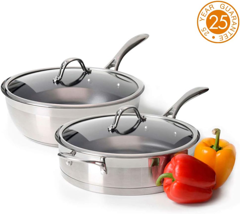 Stainless Steel Pan Non Stick. SNOWCLAD Pots and Pans Set Non Stick, 10 Pcs Hybrid Stainless Steel Cookware Sets, Non Stick Frying Pans, Saucepans, Saute Pan & Stock Pot, PFOA Free Kitchen Skillet,Induction Compatible With their smooth, slick surfaces, non-stick frying pans prevent food from sticking and ensure effortless cleanup